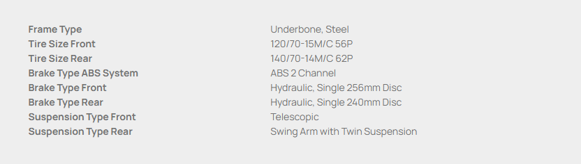 STYLO 160 ABS 32,525,000 3300 3300 2424 3300 1942 3200 1659 2800 1469