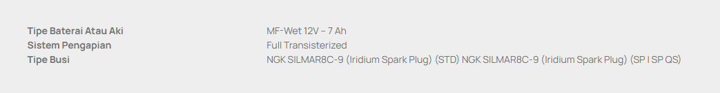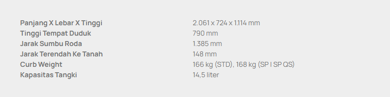 | NEW CBR 150 ABS RACING RED & TRI COLOR | 42,725,000 | 4300 | 3400 | 3103 | 2700 | 2478 | 2600 | 2116 | 2500 | 1859 |