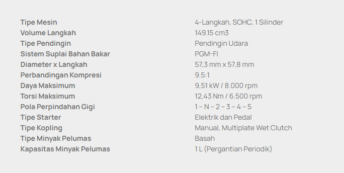 | CBR 150 ABS HS/MH | 43,425,000 | 4300 | 3400 | 3081 | 2700 | 2461 | 2600 | 2101 | 2500 | 1846 |